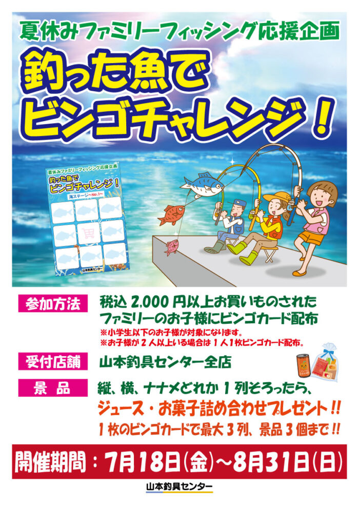 「釣った魚でビンゴチャレンジ!」を夏休み期間中7/18金〜8/31日まで開催します![]()