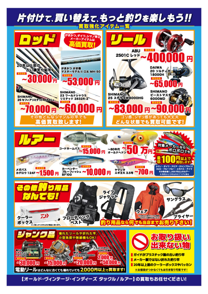 ぜひ、この機会に使わない釣具をお持ち込みください