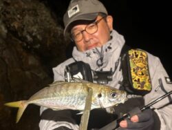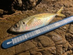 やや強めなロッドなので一気に距離を詰めて、抜き上げるとナント!大きなアジ♪