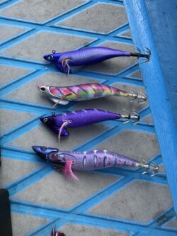 今回は平均40mの水深で釣りをしました。全体的にパープルでの釣果が多く渋くなってきたタイミングはマーブルテープにすると当たりが増えました👏