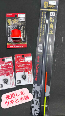 ウキはキザクラの黒魂キングの0シブ、黒魂BS自立の0号を使いました。