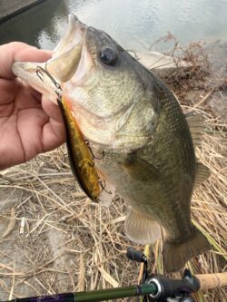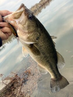 シャッド、ジャークベイト、フラットサイドクランクなどローテーションして探り、夕マズメにようやくキャッチ!!