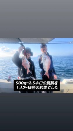 この日の結果は、500g~2.5キロの真鯛を1人7~15匹程。プラス、キジハタ多数といった状況でした。