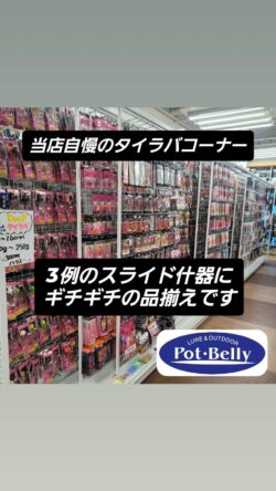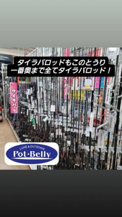 こちら当店自満のタイラバコーナーです。3列のスライド什器にギッチギチの品揃えです。ご釣行の際は是非とも当店をご利用下さいませ。