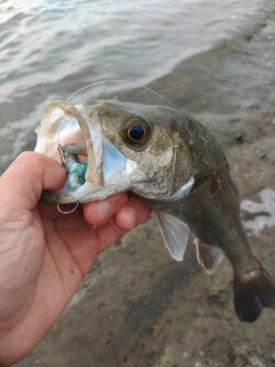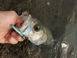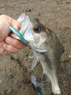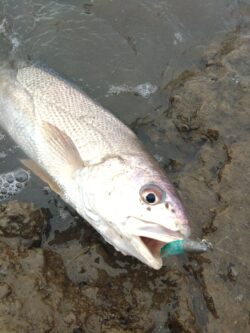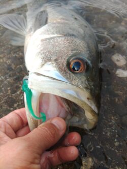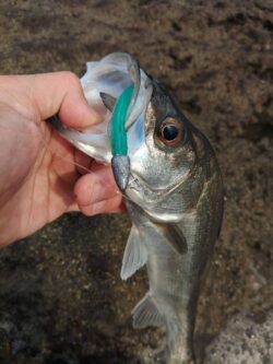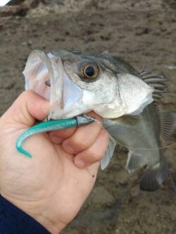 ルアーはBOXに忍ばせていたシーバス用ワームのジグヘッド