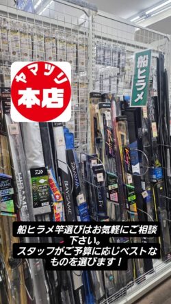 山本釣具センターではヒラメ用品の竿、リ-ル、仕掛けを豊富に取り揃えて