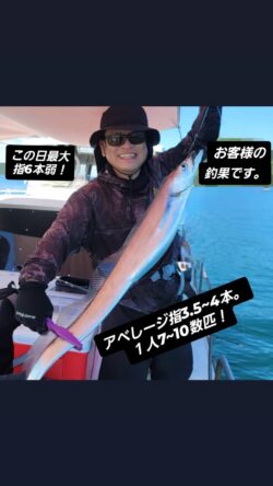 先日(7月24日釣行)、再びタチウオ爆釣中との情報を得て急遽、芦北の遊人さん(090-9492-3810)でタチウオジギングに行ってきました。